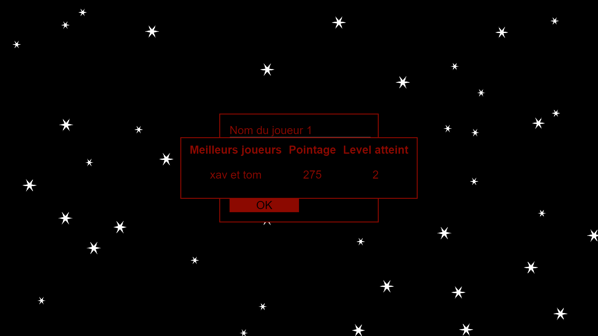 Quand le vaisseau est détruit, leur score est comparé au meilleur enregistré et ajouté au leaderboard.